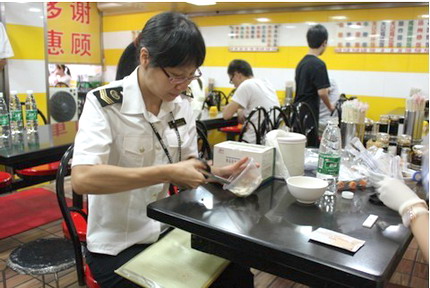 为发现、挖掘餐饮行业各种违法添加非食用物质、滥用食品添加剂等“潜规则”行为,省局近期制定印发了2012年餐饮服务食品安全专项抽检监测工作方案,部署对饮品、熟食制品开展针对性专项监督抽检,并采购和下发了一批快速检测试纸、试剂,充分利用技术手段进行排查,确保“餐饮消费打假行动月”取得成效。(省局食品安全监管处供稿/图)
